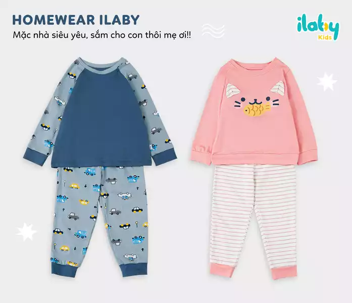 Bộ mặc nhà họa tiết phối thân trơn