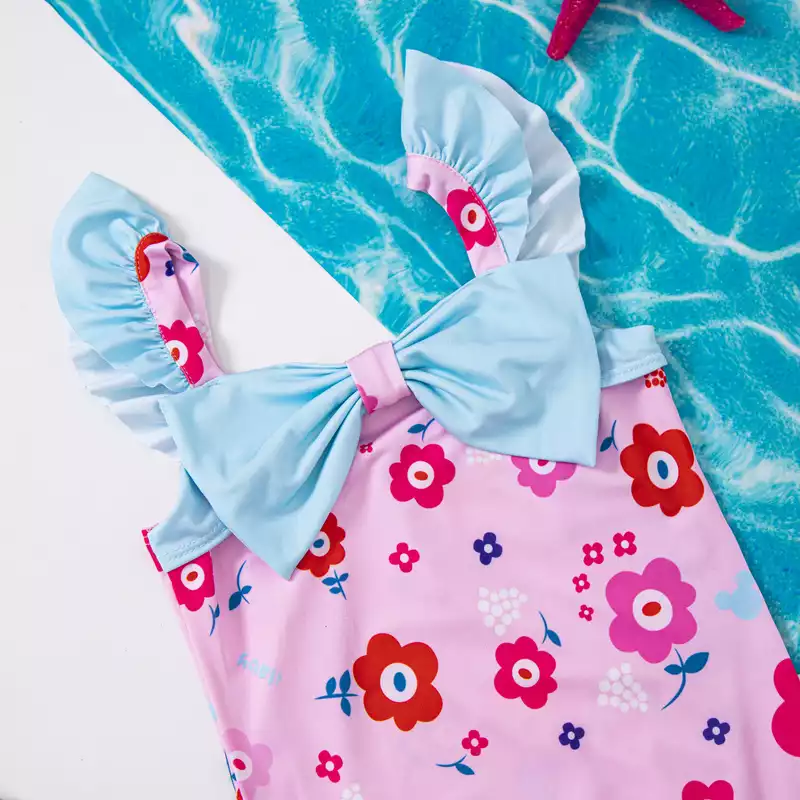 ILaby - Nơi thiên thần tỏa sáng - Bikini bé gái ILABY liền hoa tiết phối nơ ngực chất liệu thun lạnh co dãn 4 chiều
