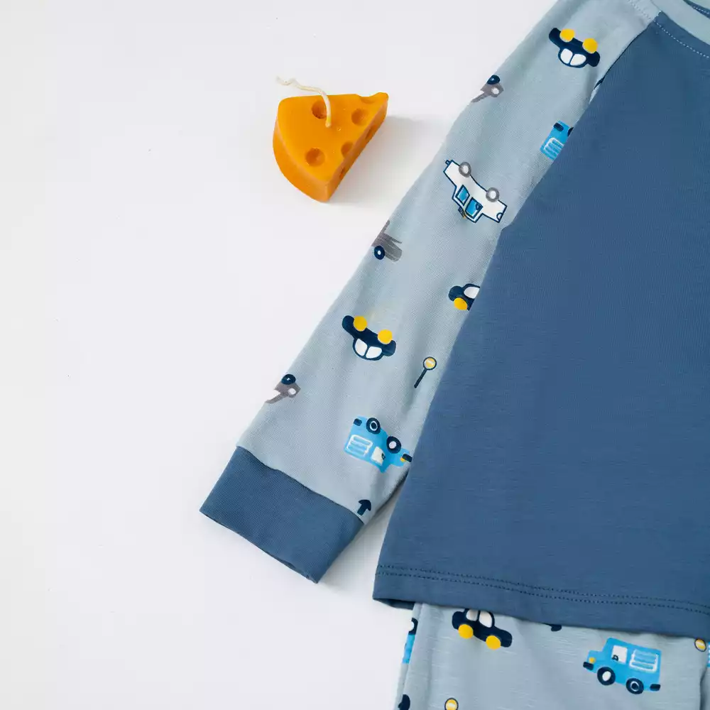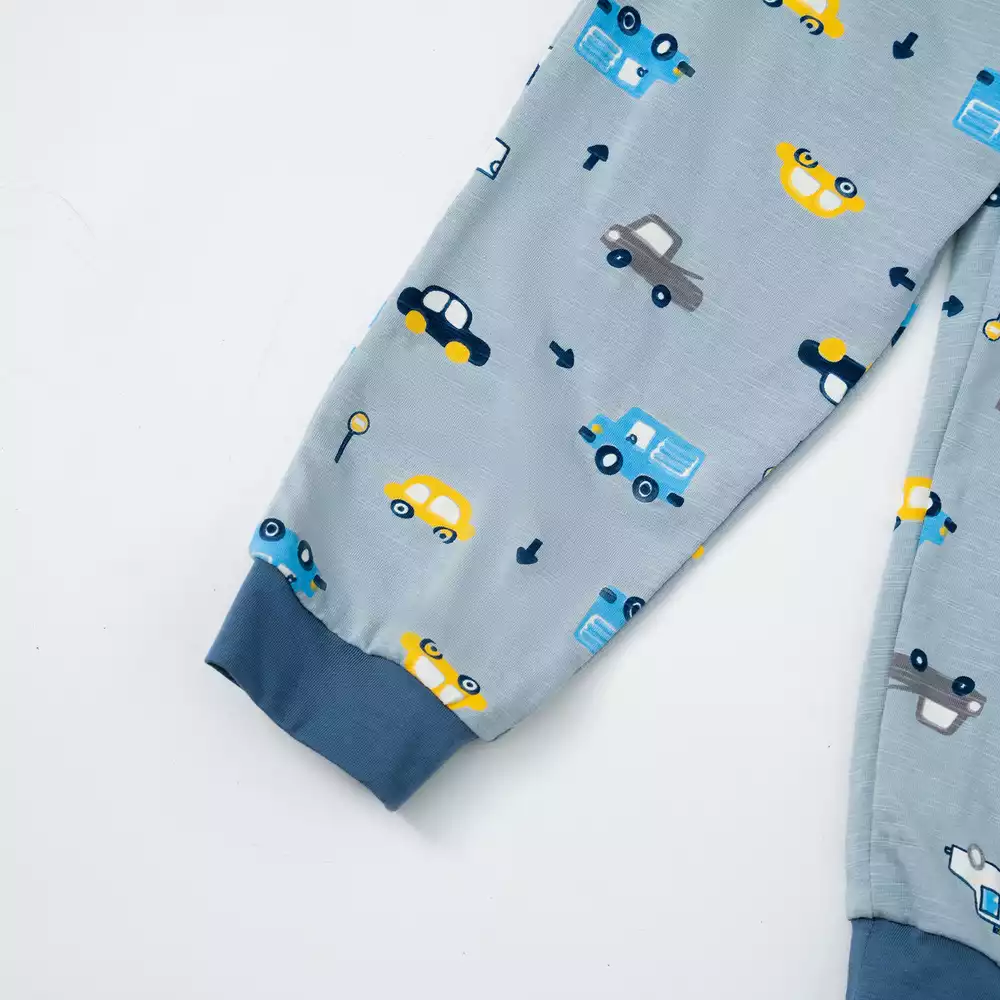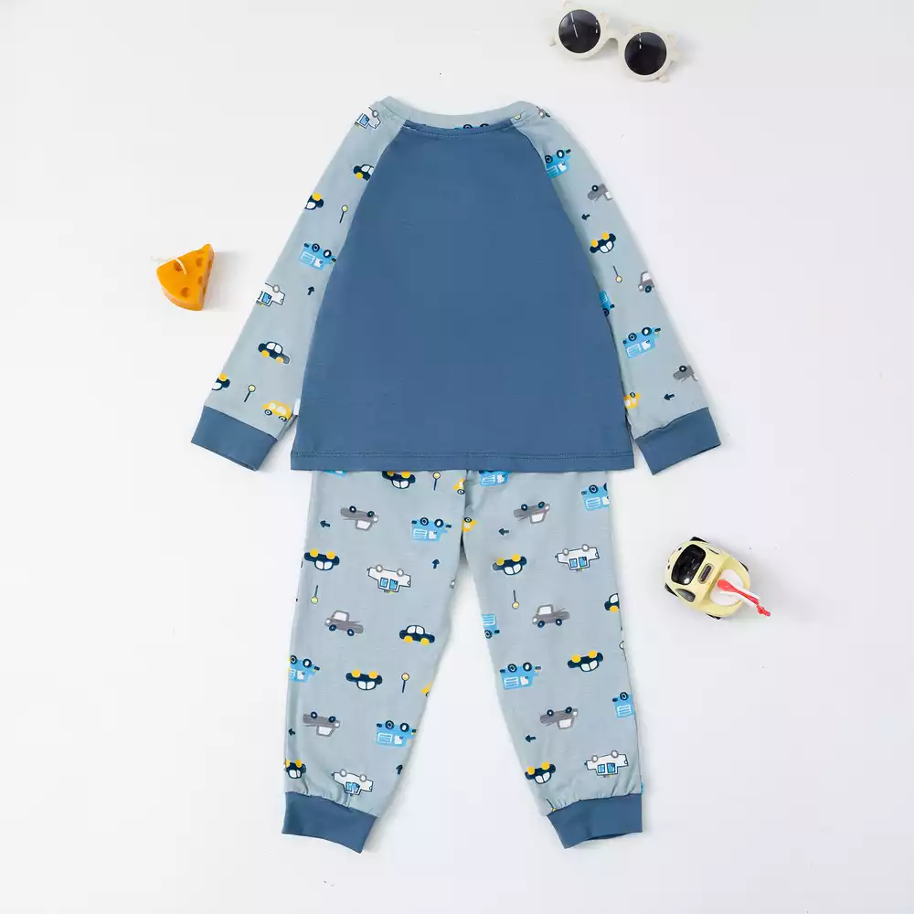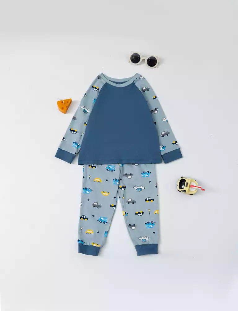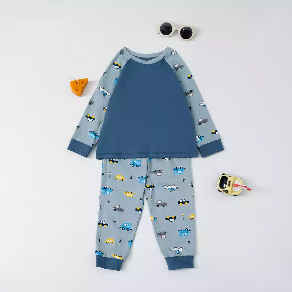 Bộ mặc nhà họa tiết phối thân trơn
