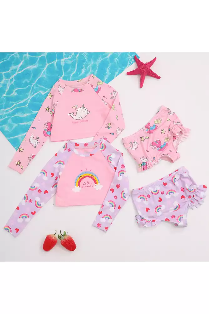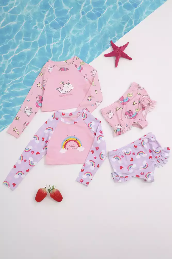 ILaby - Nơi thiên thần tỏa sáng - Bikini bé gái ILABY liền hoa tiết phối nơ ngực chất liệu thun lạnh co dãn 4 chiều