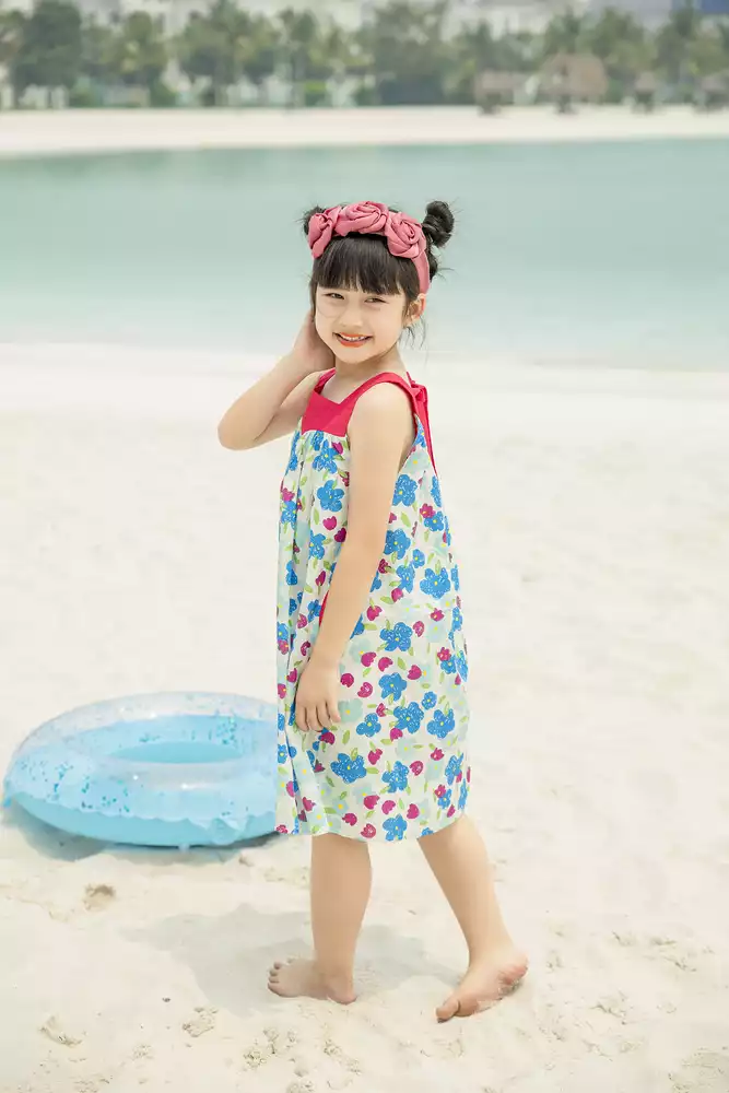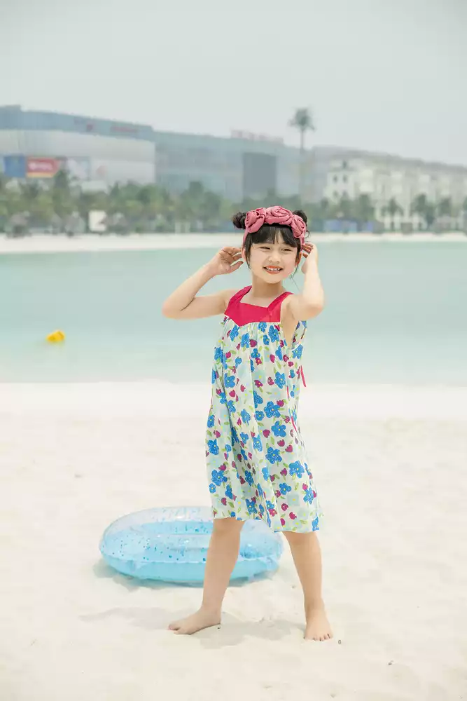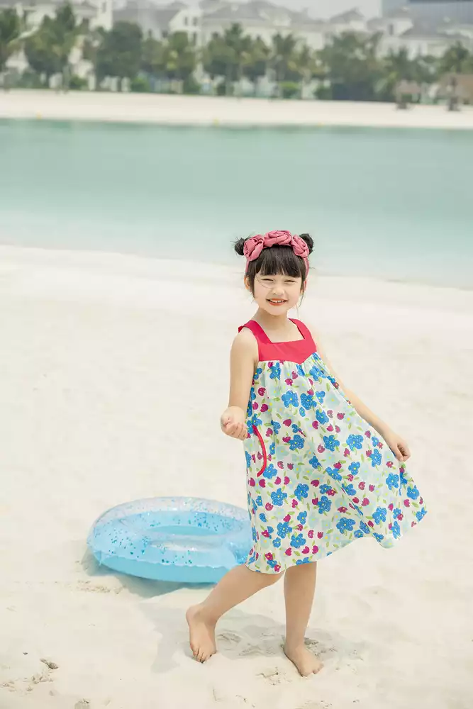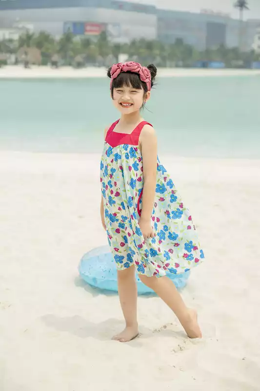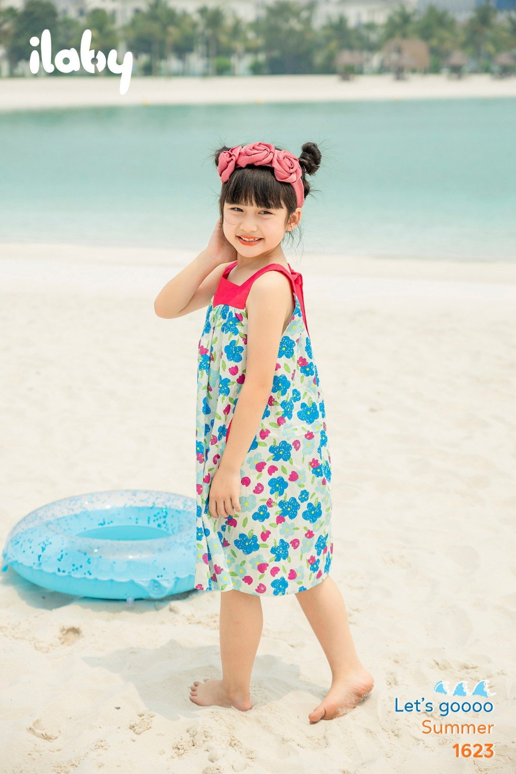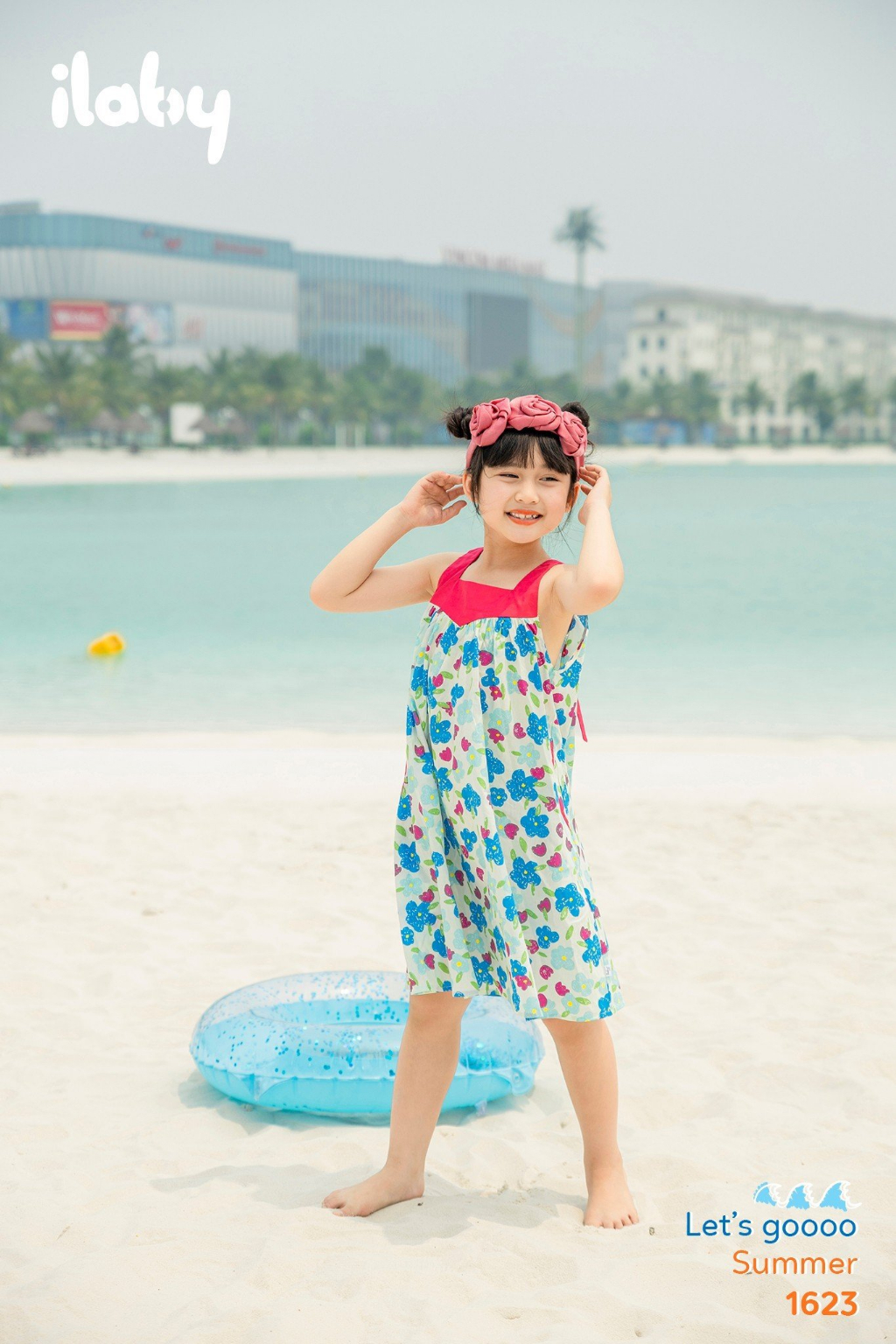 ILaby - Nơi thiên thần tỏa sáng - Váy họa tiết bé gái ILABY cổ vuông sát nách phối màu chất liệu thô hoa mềm mại cho bé 2-11 tuổi